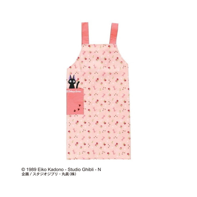Nuttede 'Kiki den lille heks' forklæde med en mønstre af Jiji og blomster og med Jiji som nuttede stikker op af den praktiske lommer.