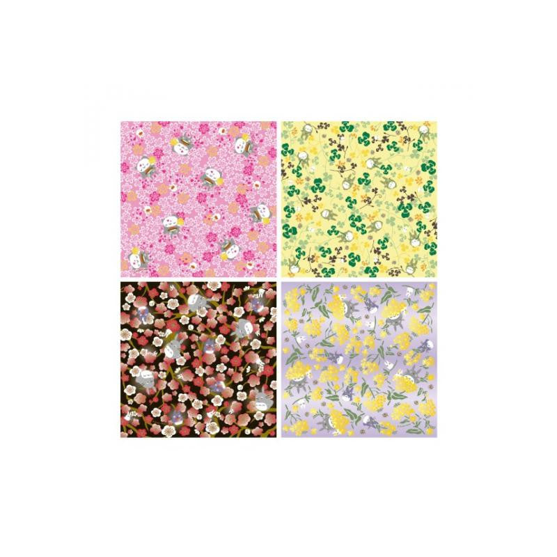 Sæt af 4 smukke forårs tema Totoro Chiyogami papir. Perfekt til for eksempel origami