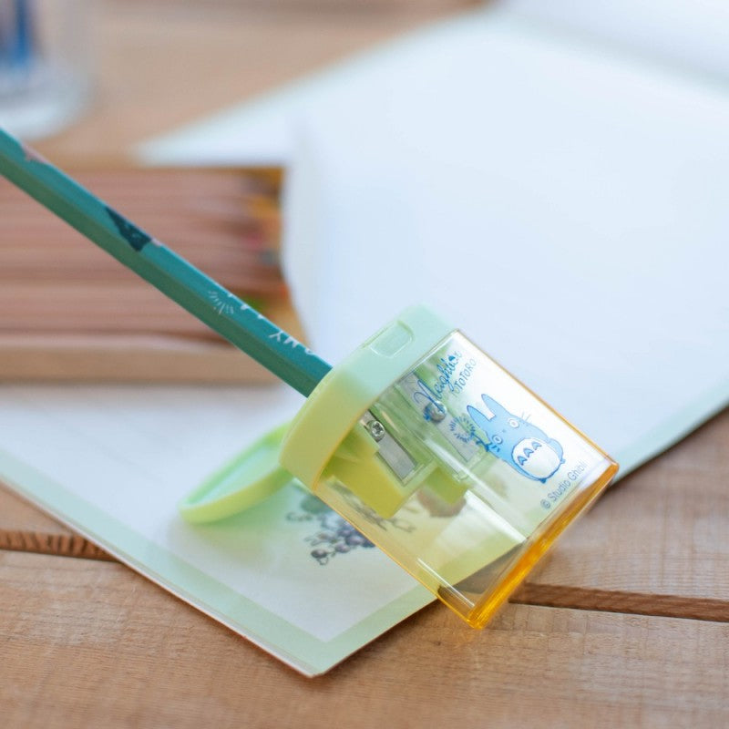 Nuttede blyantspidser med motiv af en blå Totoro fra min nabo Totoro, med et låg over indgangen til spidseren og intet spilder ud når du ikke bruger den. Perfekt til at tag med i penalhuset.
