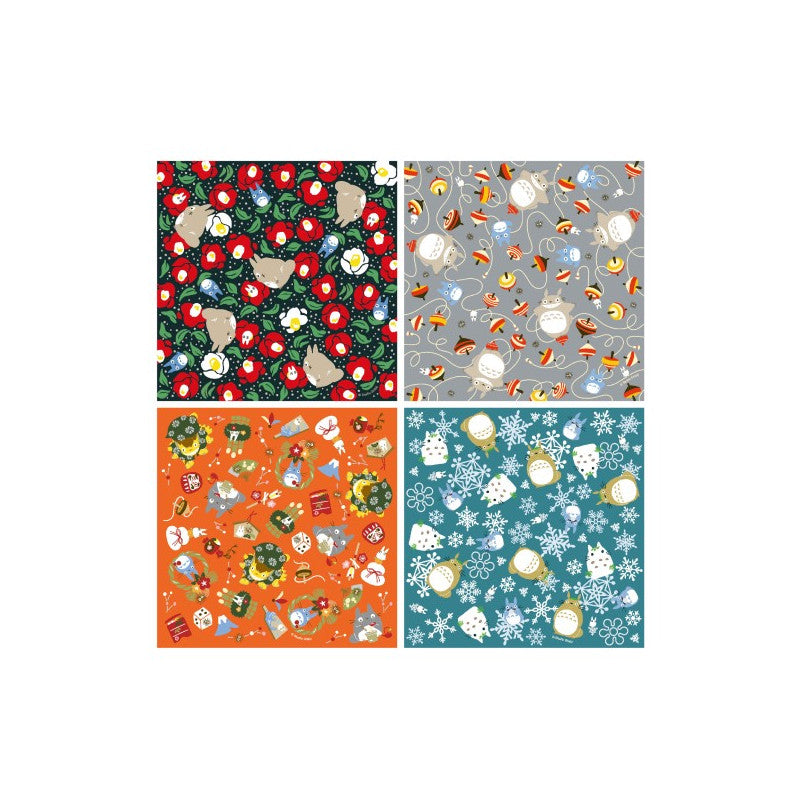 Sæt af 4 smukke vinter tema Totoro Chiyogami papir. Perfekt til for eksempel origami